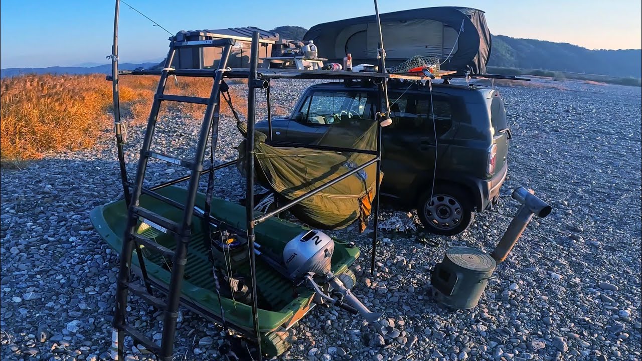 車上泊これはいいです、ルーフキャリアとパイプと板とテントがあれば広々寝れますね、アカメは簡単に釣れる魚ではないです、露天風呂開放感あり過ぎです