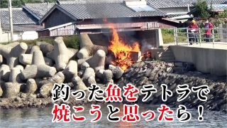 釣りスギ四平 燃やしたテトラで釣れた魚を焼こうと思ったらいきなり【ドッカン】凄いことになった!!!